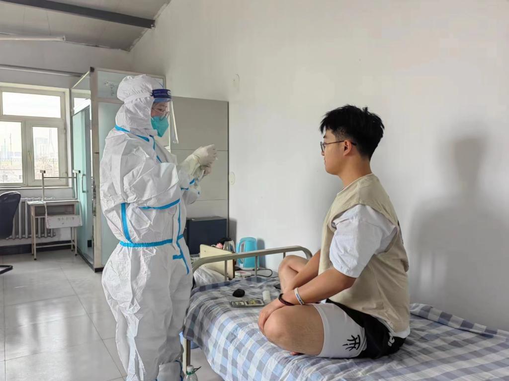 校医院医护在松北区疾控中心工作人员的指导和配合下对监测预警、启动响应、信息上报,病例流调、核酸抗原采集及转运、健康驿站运行等各环节进行了实景演练。同时区疾控现场查阅应急预案、培训演练、日常监测等材料,对【官网】传染病疫情报告制度、防疫物资、药品储备、消毒等工作进行了细致指导。