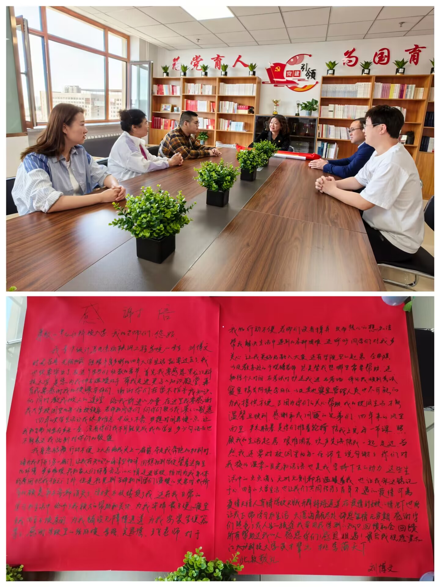 5月22日上午,计算机学院物联网2019级2班刘博文及家长将一面印有“师德高尚教学严谨 爱生如子师恩难忘”的锦旗和手写感谢信送到计算机学院,感谢学院及老师们在大学四年期间无微不至的关怀和照顾。