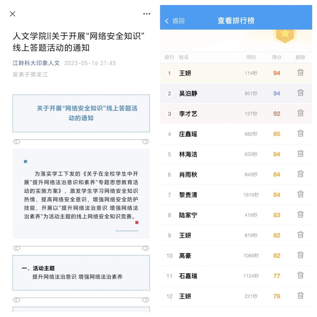 人文学院将继续围绕“提升网络法治意识和素养”专题思想教育活动要求,不断推进网络安全法治教育,提升学院学生网络安全法治素养,传递正能量,努力营造风清气正、充满阳光的网络环境。