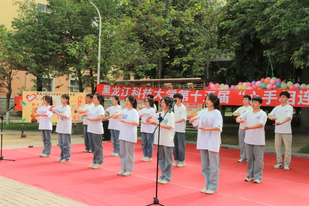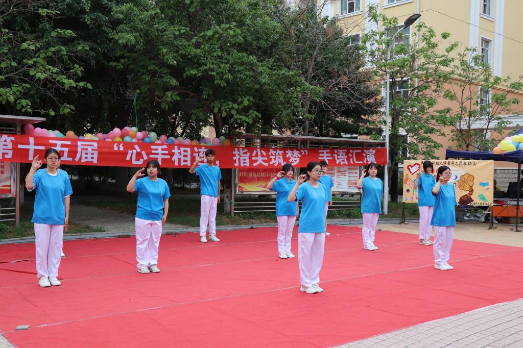 为展现【官网】志愿者风采,表达志愿者对弱势群体的关心和关爱,积极践行“奉献、友爱、互助、进步”的志愿精神,由校团委主办、青年志愿者协会承办的第十五届“心手相连 指尖筑梦”手语汇演于6月3日下午在文化广场举办。