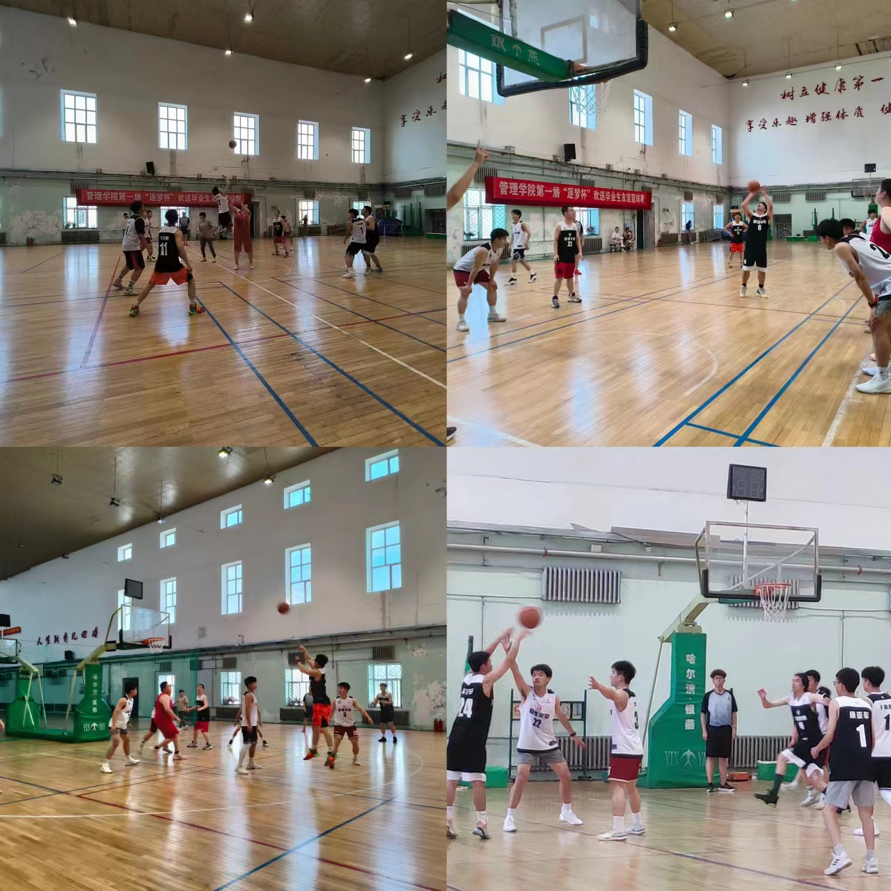 始于初秋、终于盛夏,毕业的日子悄然来临,为欢送即将毕业的2019级学子,增进师生友谊、丰富课余文化生活,营造浓厚的“感恩、惜别、留香、欢送”毕业氛围,6月14日上午11时,管理学院在体育馆举办了第一届“逐梦杯”欢送毕业生友谊篮球赛。参赛双方分别为由辅导员老师带领的在校师生代表队和2023届毕业生代表队。学院党委副书记徐海英、学工办主任李宁以及全体辅导员到场为参赛人员助阵喝彩。