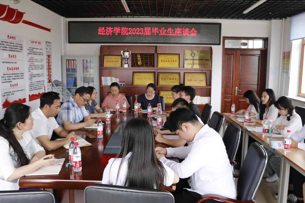 增进爱校荣校情怀,一条建议献母校。6月14日,经济学院召开2023届毕业生座谈会,与会的毕业生代表围绕大学期间个人收获感悟、母校师生情怀,对未来的规划憧憬,立足学院发展实际,对教育教学、人才培养、综合服务等方面工作积极建言献策。院长孙永波表示,希望各位同学完成向校友身份转换后,依然能够关注、支持母校发展的各项事业,多建言献策,为学校的发展贡献自己的校友力量。