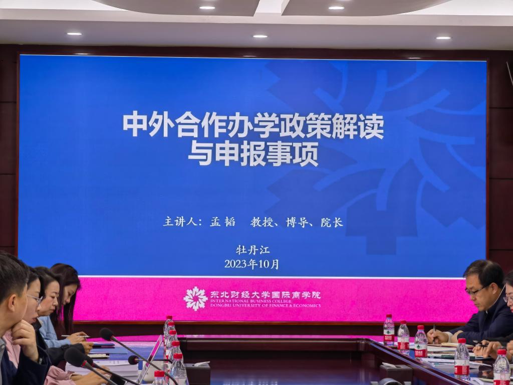 本次讲座邀请了沈阳大学校长赵彦志作了题为《中外合作办学的举办与发展》主旨讲座。东北财经大学商学院院长孟韬作了题为《中外合作办学政策解读与申报事项》的讲座。最后,项目专家对齐齐哈尔大学、佳木斯大学及牡丹江师范学院拟申报新合作办学项目进行了预答辩并提出了整改方案。