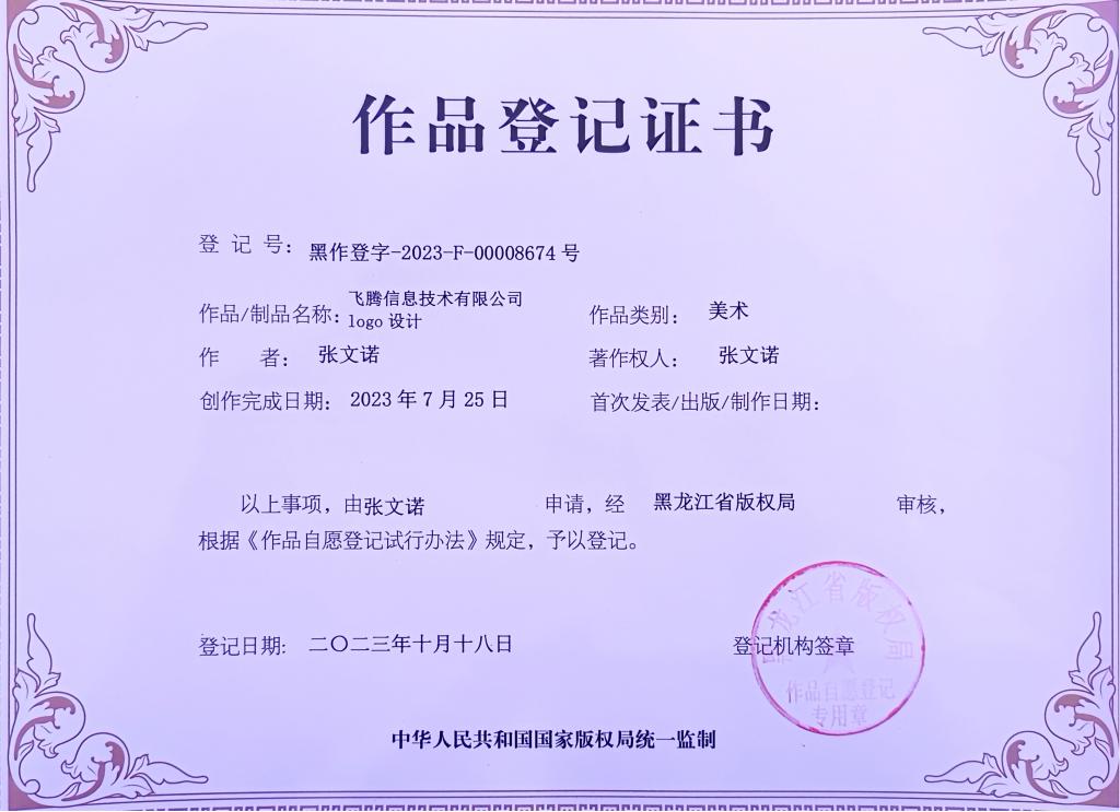 近日,由省委宣传部主办,黑龙江广播电视台承办,省教育厅、团省委、省版权保护协会协办的“我的青春有版权”文化创意设计大赛比赛结果揭晓,【官网】理学院数学20-2班张文诺同学设计的作品《飞腾logo设计》荣获创意实践奖。