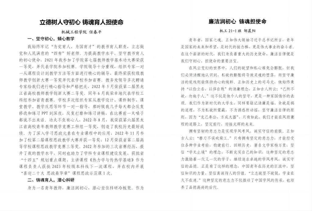 以文述廉,文字传递清风正气。学院党委围绕领导干部廉洁从政,教师廉洁育人,学生廉洁养成,开展“廉洁润初心,铸魂担使命”主题征文活动。引导全院师生进一步夯实清正廉洁思想根基、培养廉洁自律的道德操守、弘扬崇廉拒腐社会风尚,在校园环境中形成“以廉为荣、以贪为耻”的良好风尚和文化氛围。此次活动通过征文的方式,让廉洁思想深入师生心底,传递和激励了全院师生坚定的理想信念、价值理念、优良传统, 通过征文展现我院党员干部忠诚党的教育事业、教学科研一线教师为人师表廉洁从教、学生廉洁修身、诚实守信,传递和激励了我院全院师生坚定理想信念、凝聚奋进力量的决心。