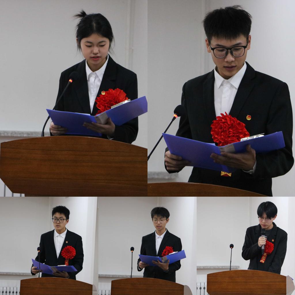 表彰大会在雄壮的“光荣啊,中国共青团”的歌声中拉开帷幕。与会人员一起回顾了2023年暑期社会实践成果视频集锦。环化学院团委副书记徐子健对环化学院2023年暑期社会实践开展情况作了全面总结,团委副书记高晓研宣读了《环化学院2023年暑期“三下乡”社会实践表彰决定》。与会老师及领导为社会实践优秀个人、优秀团队、优秀调研报告、最美志愿者以及优秀组织代表颁奖。最美志愿者代表化工21-2班候世康、优秀调研报告代表应化22-3班包金政、优秀个人代表应化22-1班史蔓菲、优秀团队代表应化21-2班于家琪、优秀组织代表化工22-2班田宸瑄依次分享了自己暑期社会实践的感悟。他们通过自己的努力深刻阐释了新时代青年有理想,敢担当,能吃苦,肯奋斗的含义,用自己的行动诠释了“永远跟党走”的坚定信念。相声表演《走向国际化》、朗诵表演及歌曲《指纹》将大会推向高潮。