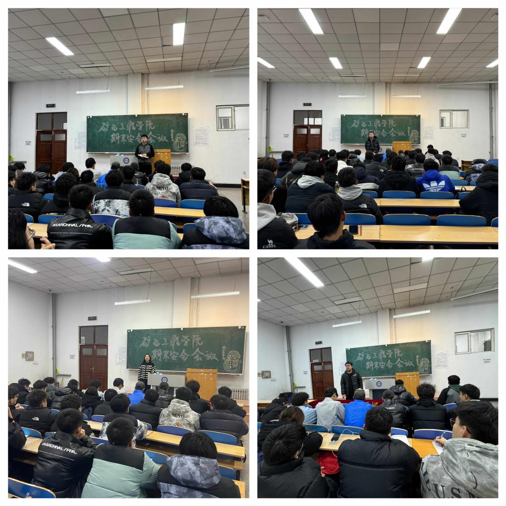 12月7日下午,矿业工程学院在主楼ES0106召开本学期末学生安全工作会议,全体辅导员和全院各班级班长参加本次会议。会上,各年级辅导员分别围绕寝室消防安全、期末离校安全、假期安全、学生心理健康安全、期末考试诚信等问题总结以往工作经验,并就潜在安全问题进行集中研讨。学工办主任杨明对学生安全工作提出三点要求:一是抓好抓细日常安全管理,切实保障学生人身安全和财产安全;二是高度重视学生心理安全工作,关心关爱学生心理健康;三是深化意识形态安全工作不松懈,守好新时代意识形态斗争的主阵地。