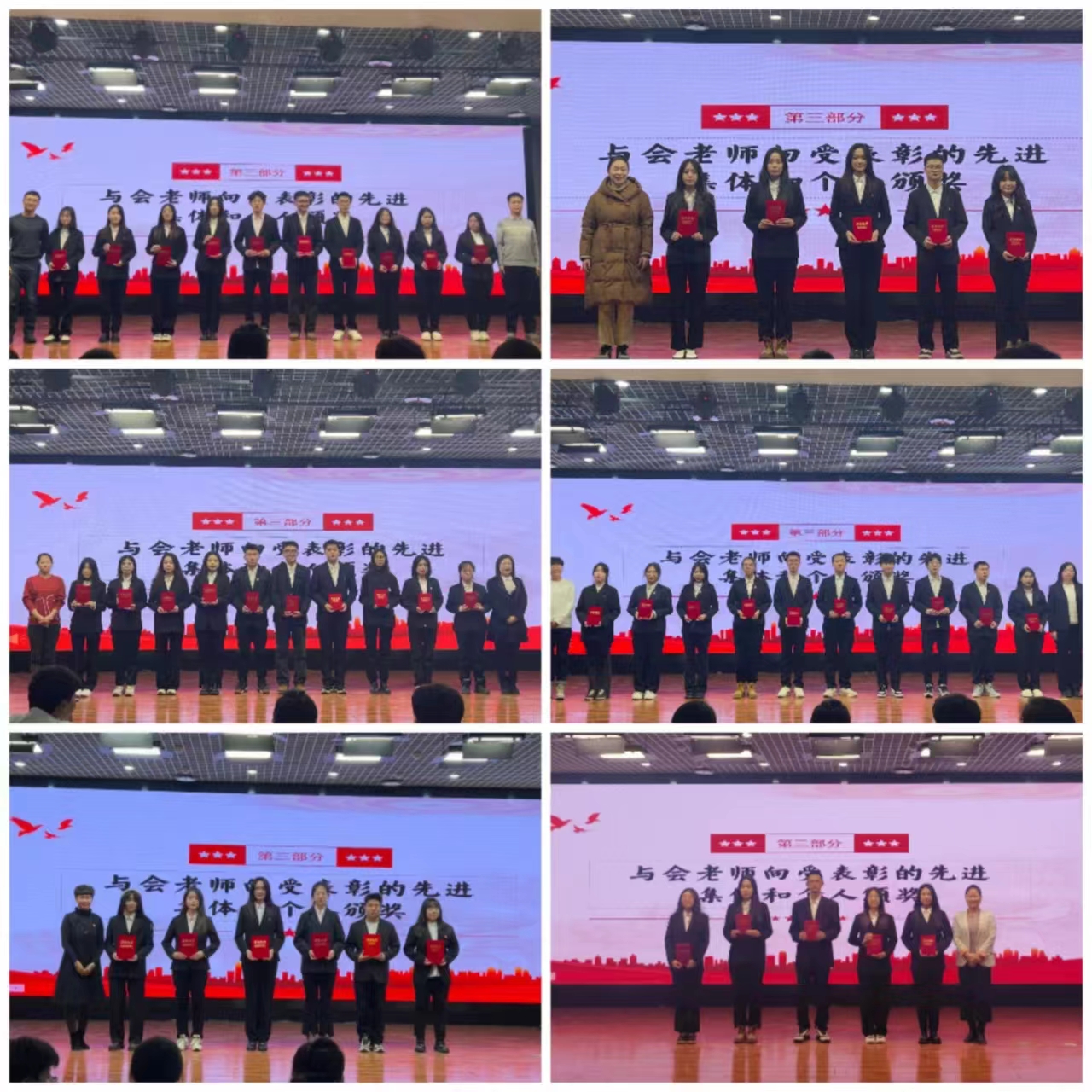 大会在嘹亮的国歌声中拉开帷幕。管理学院副处级辅导员李宁宣读了《关于表彰2023年度“优秀班集体”、“优秀学生会工作人员”、“学风建设先进个人”、“校园文化建设先进个人”、“优秀连队负责人”、“优秀辅学学长”的决定》。与会老师为先进代表颁发证书,表彰过去一年涌现出的大批优秀典型ACA20-1班邓佳欣、财会S2021班车越、数管21-3班王鹤怡、财会21-3班刘宇、税收22-1班韩金秋分别代表2023年度优秀班集体、优秀学生会工作人员、学风建设先进个人、校园文化建设先进个人、优秀连队负责人做了典型经验交流。