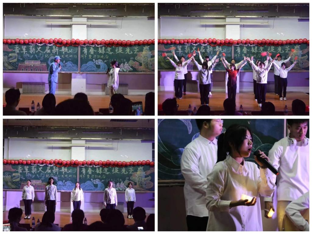 由马克思主义学院主席团成员、学生骨干集体演唱的《星辰大海》将晚会激情点燃。情景剧《亮剑》以细腻的表演充分展现红旗飘飘,军号响,剑已出鞘,雷鸣电闪!舞蹈《日不落》愿世界一切的美好,永远是旭日东升,永远的日不落。歌曲《天下无双》带来的是爱横亘千古,是爱举世无双。在独舞《乌兰巴托的夜》中感受寂静与力量的交织,共同寻找着内心的方向,感受着生命的脉动。秦筝吐绝调,玉柱扬清曲,一曲二胡演奏《兰亭序》带大家体会中华文化的源远流长、博大精深。情景剧《这盛世如你所愿》以穿越对话的形式带大家回到那个硝烟弥漫的年代,一同看那个崭新的中国。英雄是民族最闪亮的坐标,手语《追光者》带领大家一起致敬所有为党和人民的伟大事业捐躯的英烈们。这是一次关于2023年的温暖回望,送给所有一起走过2023年的人。吉他合唱《星星在唱歌》让大家一同告别旧时光,拥抱每一个温柔又闪亮的日子。许下青春的誓言,见证未来的绽放,坚定的目光、滚烫的初心,每一位马院青年用铿锵誓言诉说着“青春无悔”,誓言回响在教室、激荡在每一个人的心中。晚会在“强国有我 青春担当”的声声感召下落下帷幕。