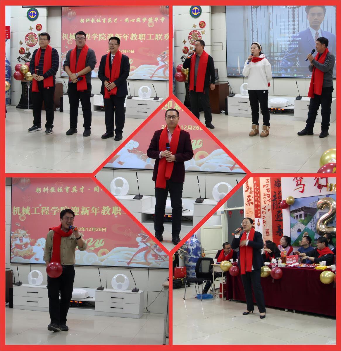 流光溢彩辞旧岁,欢歌笑语迎新年。在2024年元旦即将到来之际,12月26日下午,机械工程学院在学院二楼会议室举办了“躬耕教坛育英才•同心筑梦谱华章”迎新年教职工联欢会。学院班子成员及全体教职工共聚一堂、欢庆新年。联欢会由学院教师原立涛和王娜主持。