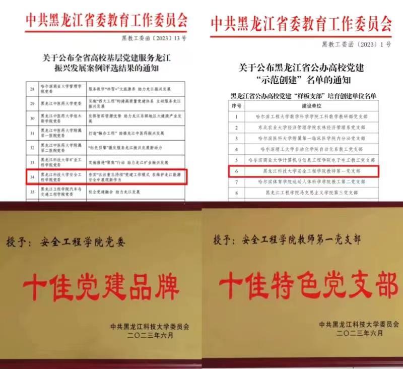 党的建设科学化水平不断呈现新局面,教师第一党支部获批省公办高校党建“样板支部”培育创建单位。同时,教师第一党支部创建的“强基•‘三助’科研工程”支部特色品牌获校“十佳特色党支部”,并被授予“先进基层党组织”;此外,学院党委打造的“‘安’如磐石”党建品牌获校“十佳党建品牌”,《夯实“三注重三持续”党建工作模式,在维护龙江能源安全中展现新作为》党建案例,获评省高校基层党建服务龙江振兴发展案例。