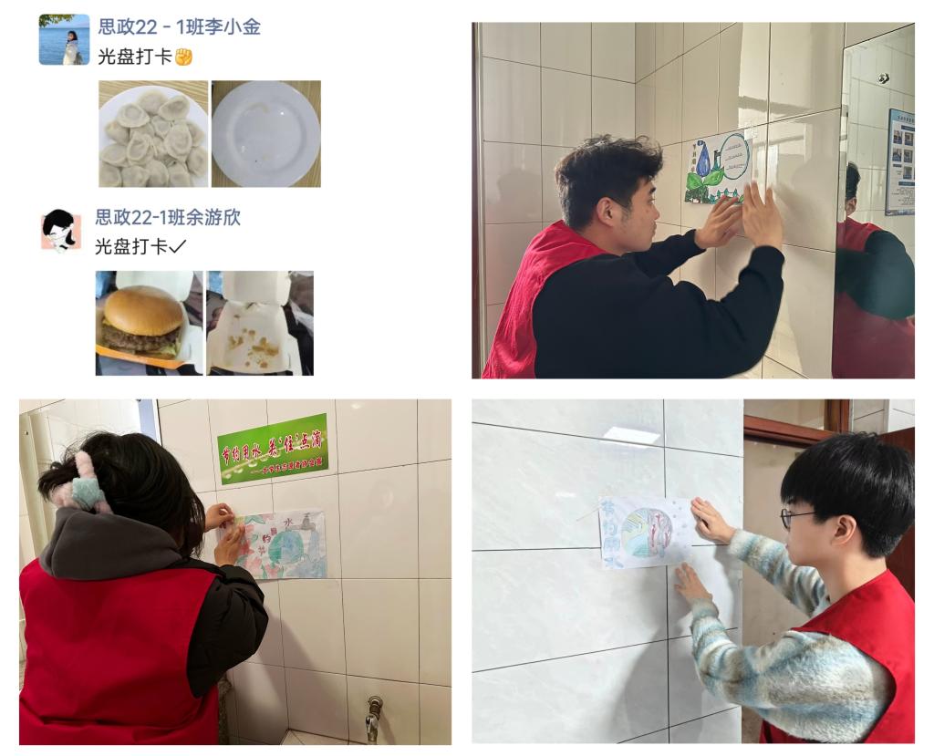2月26日-3月2日,开展“雷锋精神我践行厉行节俭树新风”光盘行动,倡导学院学生养成“珍惜粮食、反对浪费”的好习惯;3月12日,开展“凝‘青’聚力环保行 共护碧水河川美”生态文明实践活动,清理了松花江畔散落的垃圾,以实际行动保护母亲河,爱护生态环境;3月19日,开展“节约点滴水 共护生命源”宣传活动,志愿者们走进洗漱间张贴手绘宣传海报,提高学生节水意识。多层次、多形式的生态文明教育活动,教育引导我院学生通过实际行动点滴小事保护生态环境,掀起环保新风。