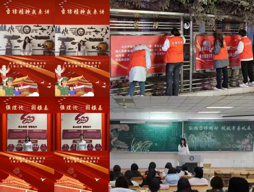 奏响砥砺之曲,在真学真信中铸牢理想信念。组建“管之音”青年宣讲团依托“黑OD在线管院之声”开设“雷锋精神我来讲”、“两会热点话题分享”等专栏七期,让青年成为学的主角、讲的主力,让雷锋精神走进青年学生心中,化为日常行动。扎实开展“弘扬雷锋精神,绽放青春风采”主题团日活动,各团支部紧扣主题,多方发力采取事迹分享、主题研讨、观看公益讲座等形式增强了我院青年学生对新时代雷锋精神传承的使命感和责任感。