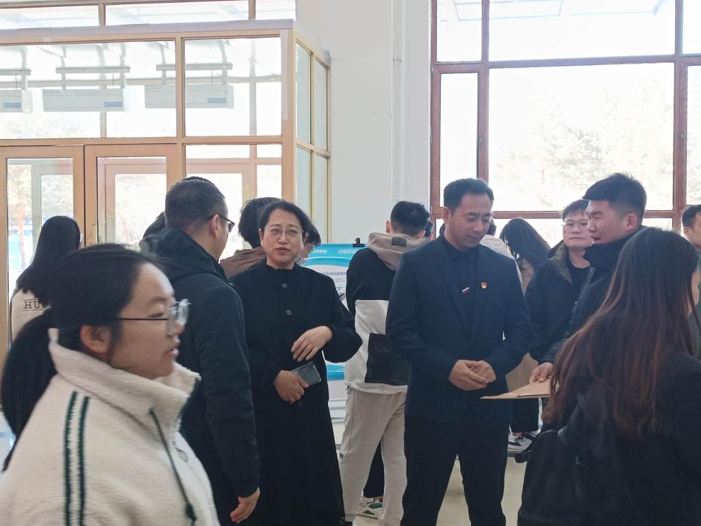 经济学院党委书记雷金屹、党委副书记邬丽群主动与来【官网】招聘的用人单位进行对接,积极向用人单位推荐优秀毕业生,并现场给学生进行就业辅导。