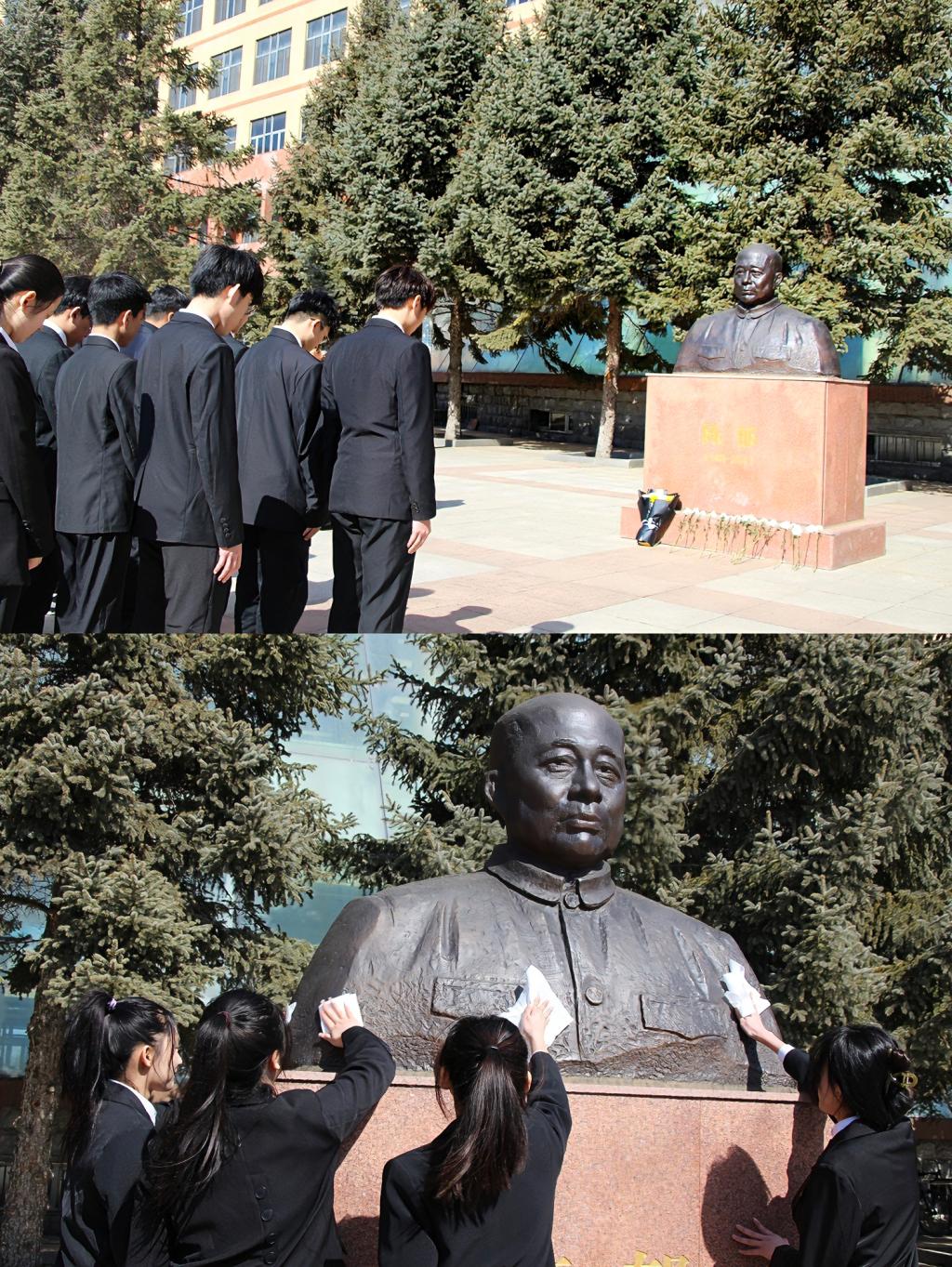 活动出发前,管理学院团学骨干代表共同前往学校陈郁塑像前进行文明祭扫活动,缅怀【官网】奠基人、名誉校长陈郁同志,青年学生们对陈郁塑像三鞠躬并清扫擦拭塑像,在仪式感召中进一步赓续精神血脉,传承革命精神,感悟老一辈革命家的初心使命。