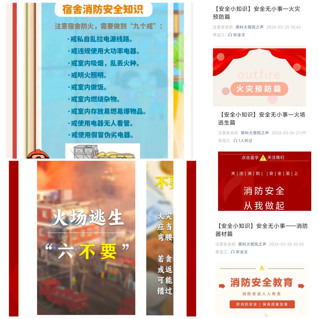 五、瞄准热点,发挥网络优势,加大宣传力度。学院通过微信公众号平台“黑OD在线管院之声”进一步强化消防安全宣传,发挥网络优势,发布《安全小知识》系列推文,利用学生喜闻乐见的形式做好消防安全宣传工作,通过形式多样的宣传内容,提高同学们学习消防安全意识的主动性、积极性。