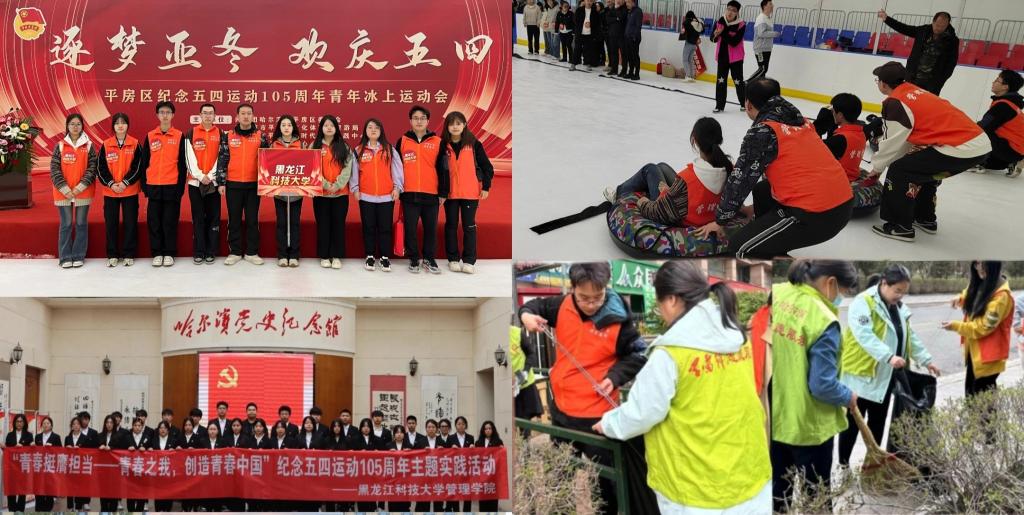 不断强化实践锻炼,以志愿之名坚定奋斗“底色”。管理学院“星火”志愿服务队积极参与了平房区团委组织的“逐梦亚冬 欢庆五四”纪念五四运动105周年青年冰上运动会,帮助大会维持现场秩序并热心参与活动;志愿服务队还前往了观江国际社区开展垃圾分类宣传及社区环境治理志愿服务活动,充分彰显我院青年学生以挺膺担当的先锋姿态,创造新的青春业绩。学院组织团学骨干代表40余人赴哈尔滨党史纪念馆开展了纪念五四运动105周年主题实践活动,活动后青年学生备受鼓舞,纷纷表示将以无畏的奋斗姿态,去践行“请党放心强国有我”的誓言,以实际行动表达爱国之情、奋斗之志。