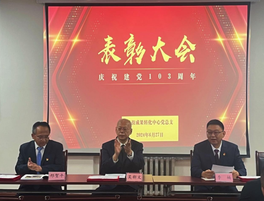 6月27日,科技成果转化中心党总支召开了庆祝建党103周年暨表彰优秀共产党员大会。中心领导班子成员、党支部书记、受表彰的党员及职工参加了会议,会议由党总支委员邢贺平主持。
