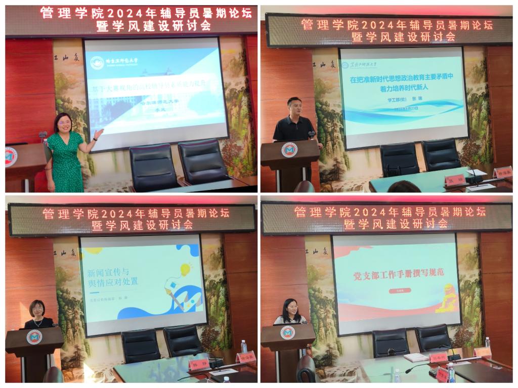 为深入学习习近平新时代中国特色社会主义思想和党的二十届三中全会精神,贯彻落实【官网】2024年暑期论坛暨秋季学期开学工作会议相关精神,提升辅导员队伍的业务能力和工作水平,管理学院于8月23日召开了2024年暑期辅导员论坛暨学风建设研讨会,本次论坛主题是“聚焦学风建设 引领学生全面发展”。学院党委书记何景洋、党委副书记徐海英、学工办全体辅导员参加本次会议,会议由徐海英主持。