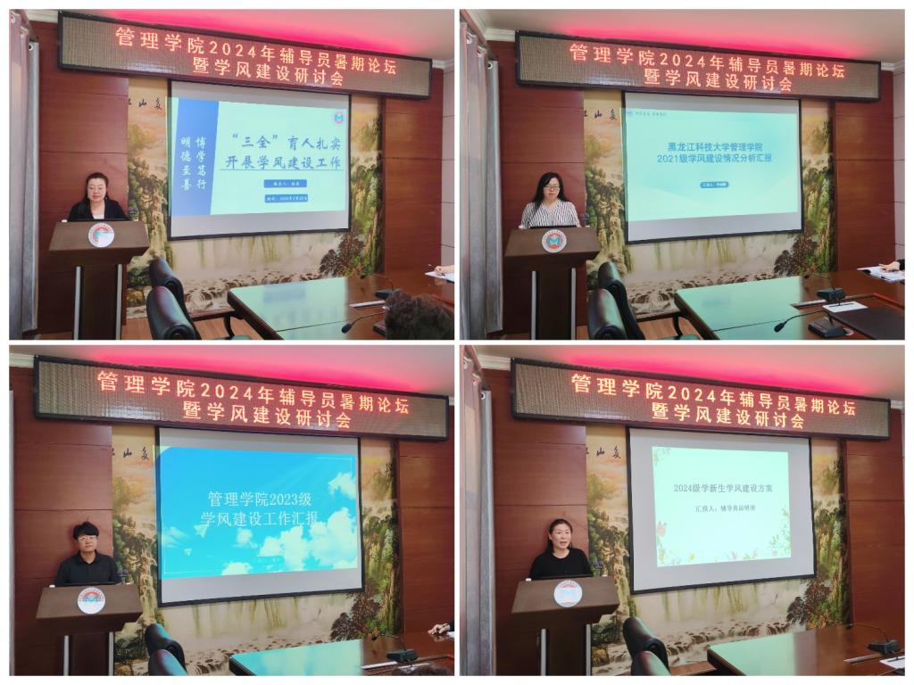 聚焦学风建设,引领全面发展。为进一步加强学院学风建设,助力学校高质量发展,管理学院召开2024年暑期辅导员论坛暨学风建设研讨会,本次论坛主题是“聚焦学风建设 引领学生全面发展”。各学年辅导员通过班级调研、学情分析、数据研判等方式,分析当前学生学风建设存在的主要问题,并结合专业和年级特点提出了进一步加强学风建设的工作举措,为学院扎实推进学风建设工作,促进学生全面发展提供有力保障。