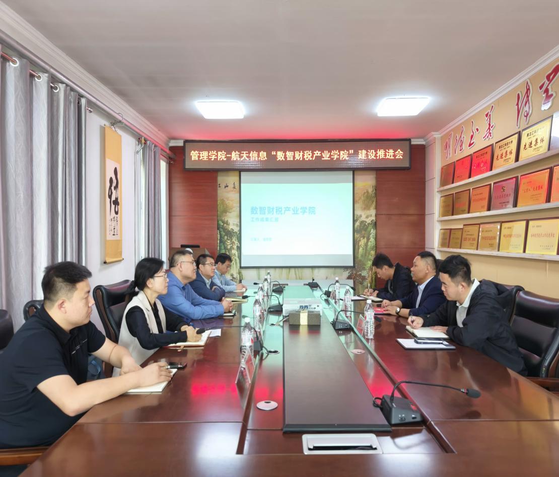 为进一步加强数智财税产业学院建设,9月19日,黑龙江航天信息有限公司总经理张平印及有关领导一行三人来我院进行调研交流,管理学院党委书记何景洋、院长洪亮及相关教研室、实验中心负责人出席座谈会。