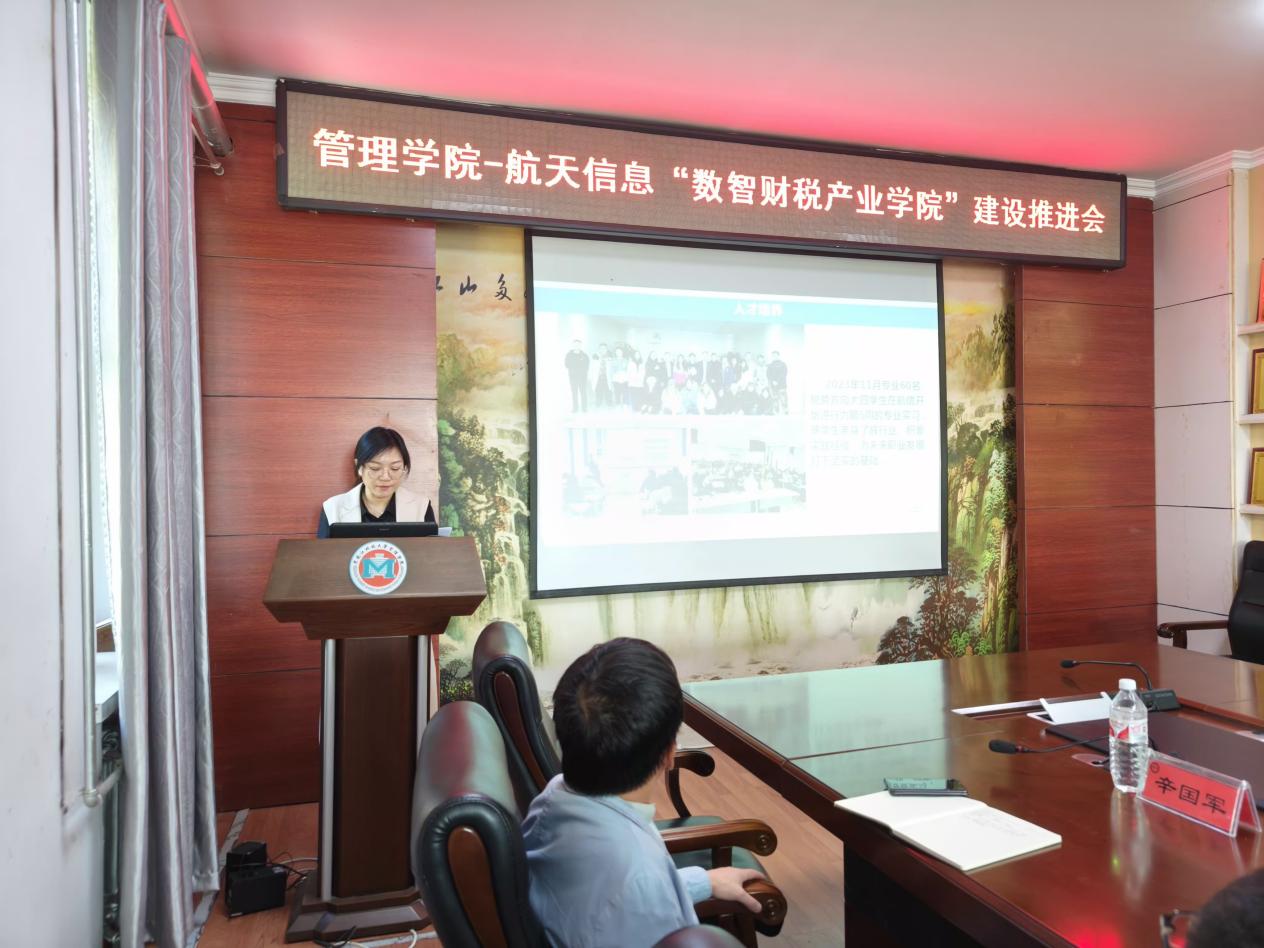 财务管理专业主任董思思就数智财税产业学院建设现状,从师资队伍建设、课程建设、教科研工作、办学条件、人才培养等方面取得成绩进行了汇报。