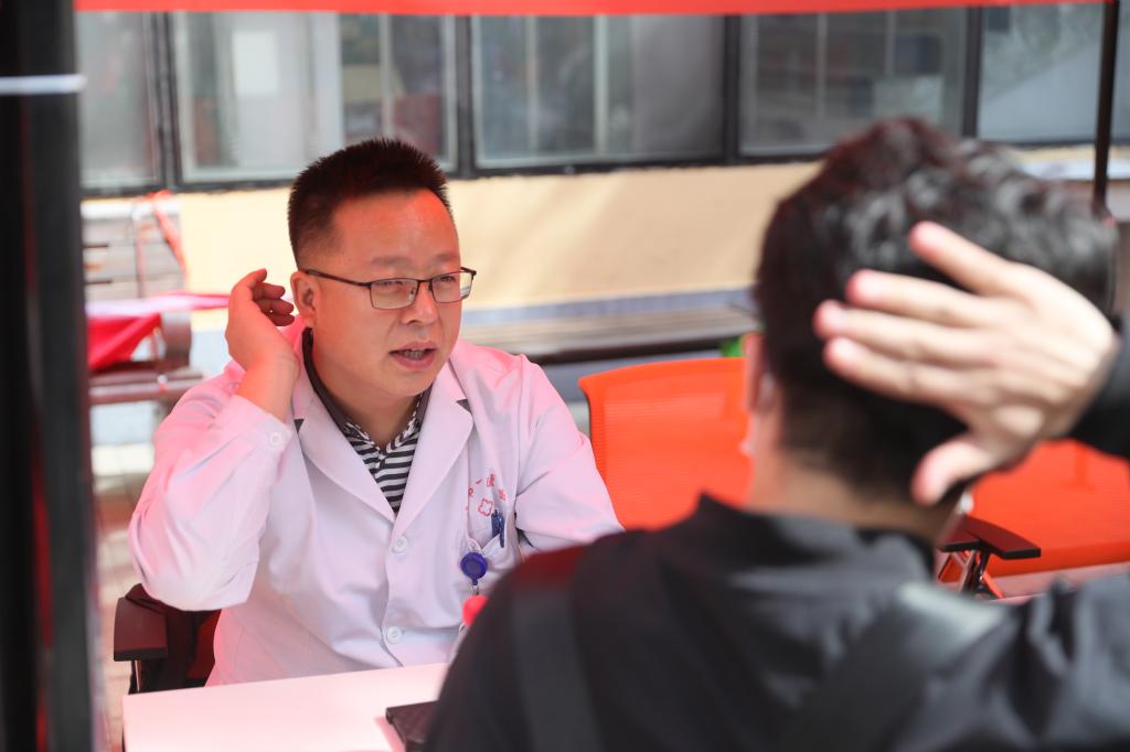 咨询义诊中,“专家天团”在沁芳园食堂门前开展健康咨询解答服务,前来咨询问诊的师生络绎不绝,专家们以饱满的精神、专业的素养热情接待每一位师生,针对他们的病情指导用药,并耐心解答师生的健康咨询,提出合理化治疗建议和健康指导,让师生不出校门就能享受优质、便捷、安全多学科的医疗服务,受到了广大师生的高度赞誉和充分认可。
