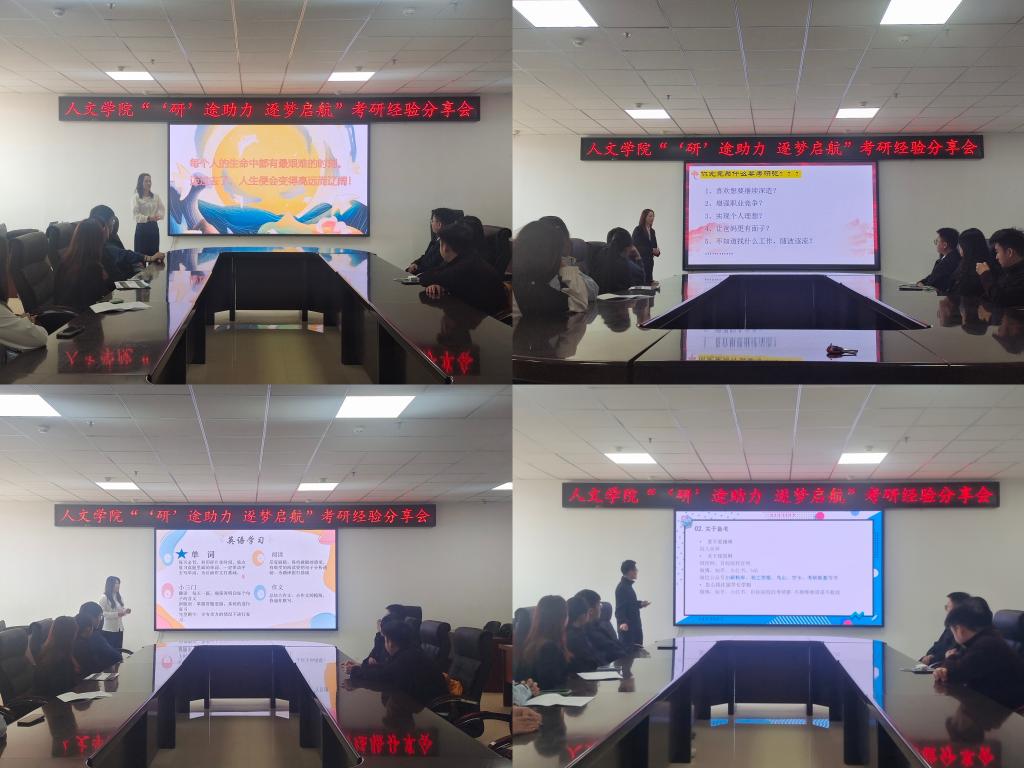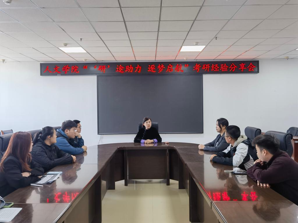 按照《OD在线加强学风建设提升考研录取率实施方案》相关要求,为“做好、做全、做实”学生考研帮扶,“抓好、抓全、抓实”备考提前量,“建好,健全,建实”考研工作体系,10月8日上午,人文学院在朝阳楼0317会议室召开“‘研’途助力 逐梦启航”考研经验分享会,院长曹景萍、研究生导师李楠及2025届有考研意向学生参加会议,会议由辅导员韩雪主持。