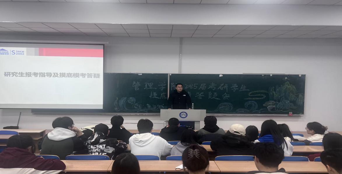 为全面贯彻党的教育方针,提升立德树人实效,强化学院学风建设,提供精准学业指导,助力应届毕业生的研究生入学考试备考工作,10月10日-11日,管理学院召开了针对2025届毕业生的研究生报考指导交流会暨考研学生摸底模考答疑会。副处级辅导员李宁,就业辅导员孙彦雷,毕业班全体辅导员及2025届考研学生共同参加了本次大会。会议由李丽娜主持。