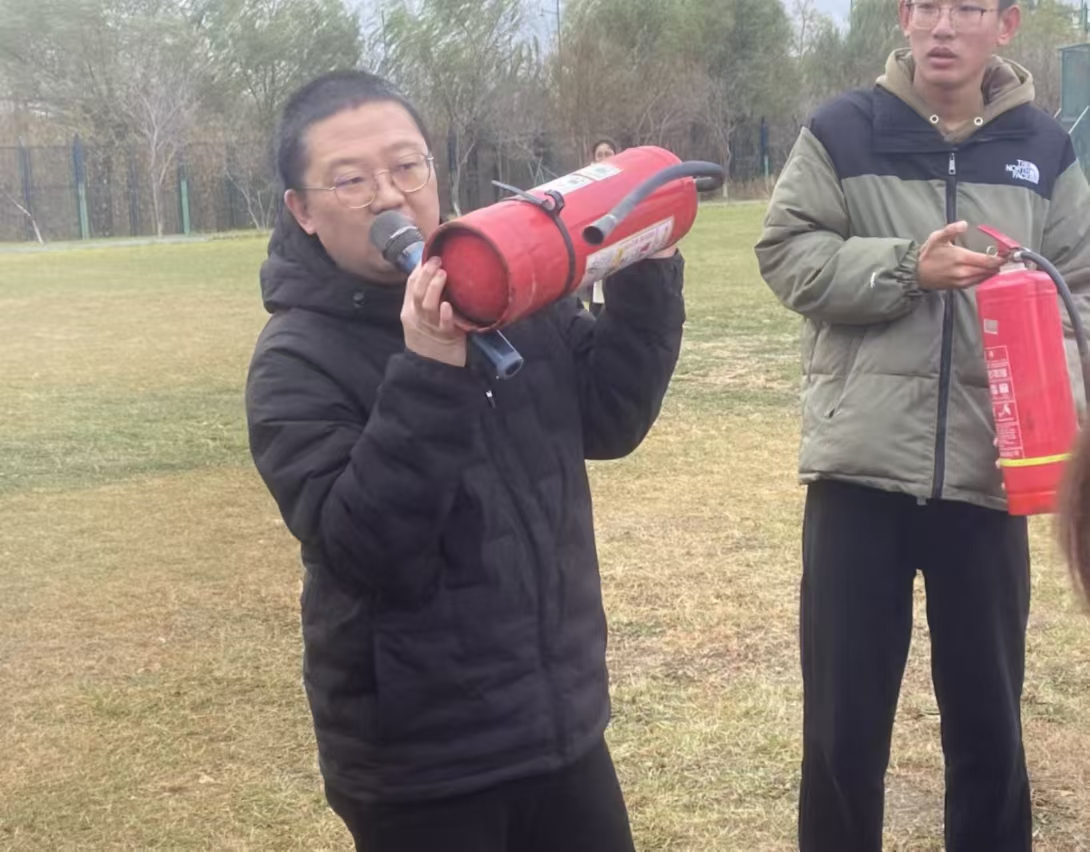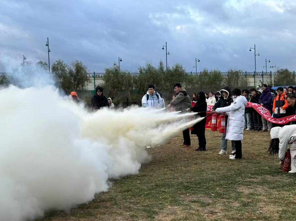 保卫处防火科孙健老师为同学们现场讲解了消防安全知识,包括火灾的预防、火灾发生时的应急处理方法以及灭火器的正确使用方法等。孙健还亲自示范了如何使用灭火器灭火,并邀请部分同学进行实际操作,让同学们在实践中掌握灭火器的使用技巧。