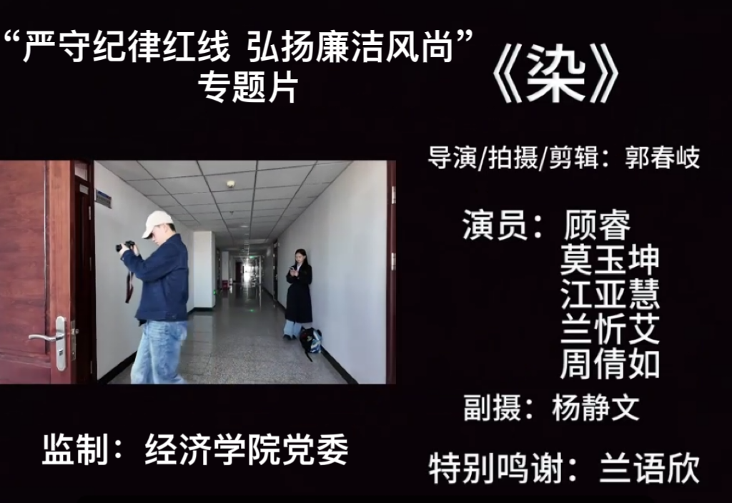 学院纪委策划录制了名为《染》的廉洁专题片。专题片以故事的形式教育广大党员贪婪终将会受到法律的惩罚,让党员师生们在观看中时刻牢记用党员标准严格要求自己,严格遵守党的纪律,从我做起,永葆共产党员的先进性,培育壮大校园正能量。