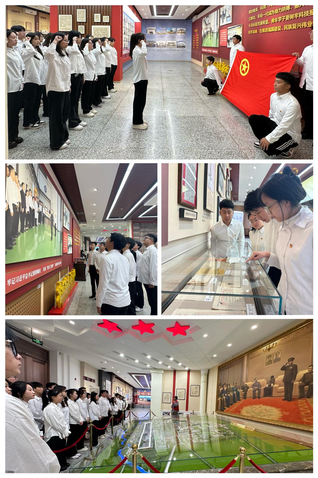 活动中,学员们走进习近平总书记视察哈工程的第一站:哈军工纪念馆,集体学习了习近平总书记视察时的殷殷嘱托:“青年学子要树牢科技报国志,刻苦学习钻研,勇攀科学高峰,在推进强国建设、民族复兴伟业中绽放青春光彩。”愈加坚定了科学报国、科技强国的初心,强化了把爱国之情、报国之志融入建设科技强国的使命担当。学习过程中,纪念馆里一份珍藏了半个多世纪的笔记吸引了学员们围观,那是中国水声工程学科奠基人、中国工程院院士杨士莪用日、德、英、俄4种文字记录的笔记,学员们在观看笔记中深刻地感受到以国防需求为第一使命、矢志潜心钻研的赤诚情怀和勇攀科技高峰,服务国防需求的科学家精神。随后,学员们在纪念馆认真聆听了工作人员的讲解,并在纪念馆庄严地重温了入团誓词。
