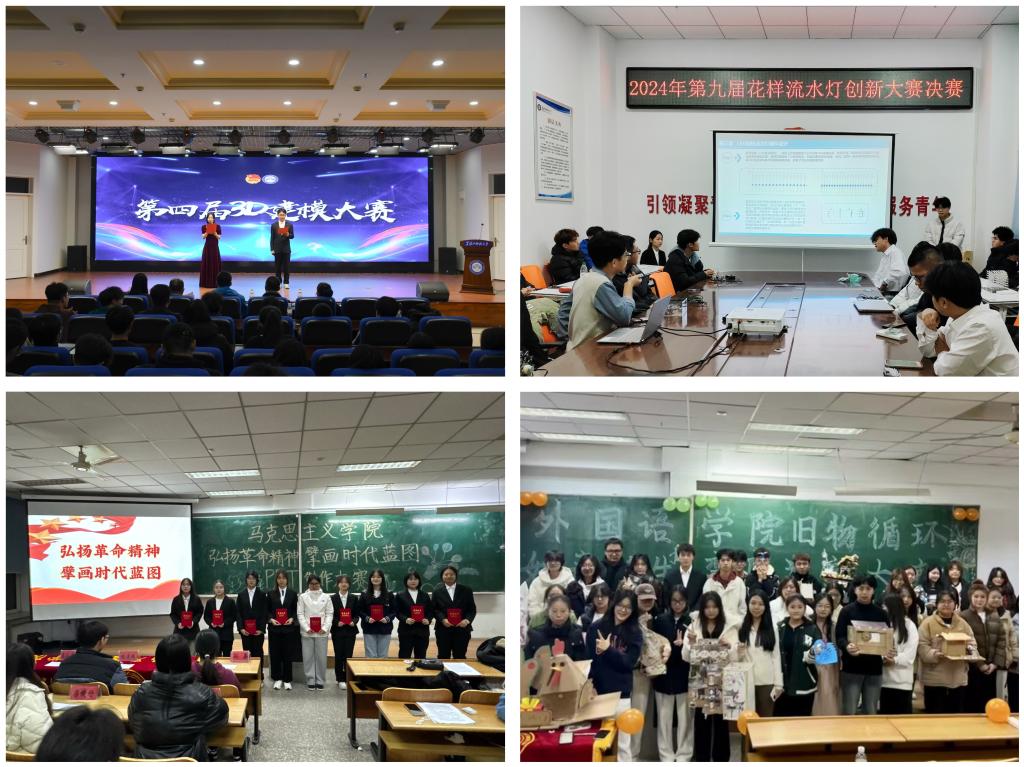 搭建竞赛平台,提升科创能力。坚持“以赛促学、以赛促练、以赛促创”,通过举办丰富多样的科创竞赛活动,不断促进学校优良学风的养成。校大学生科技协会组织开展第四届“意创未来,科创世界”3D建模能力创新大赛、第九届“创新思维,点亮智慧”花样流水灯创新大赛、“魅力亚冬进校园”高校徽章文化创意产品设计竞赛;环化学院团委、电信学院团委、机械学院团委、马克思学院团委、外国语学院团委分别组织开展第六届全国大学生市政环境类创新实践能力选拔赛、“Cool Code”编程大赛、“新星杯”科普知识竞赛、PPT制作大赛、“变废为宝”科技创新竞赛等系列科创活动,吸引了2000余名科创爱好者参与其中,进一步提升了广大青年学生的科创实践能力。