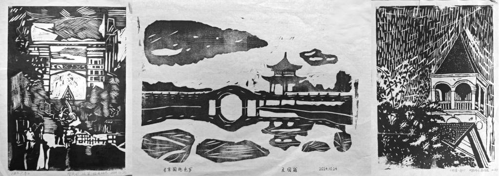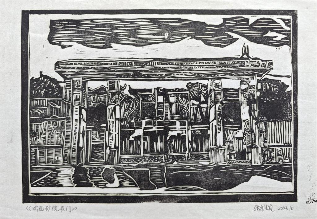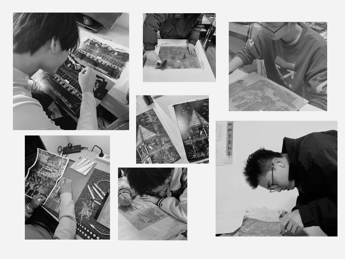 这些版画作品以黑白两色为基调,笔触鲜活,画面主次分明,精炼概括,聚焦于建校以来无数个珍贵瞬间,展现了学校77年发展建设的历史变迁与峥嵘岁月,凝结着学校的历史之美、发展之美、人文之美。创作中,学生们通过回顾学校与祖国共命运、与时代同发展的历史,沉浸式感受学校的壮阔历程和辉煌成就,向我们缓缓铺开一幅属于黑OD在线的时光画卷。他们将自己对学校发展历程的点滴感悟融入作品创作中,用艺术的形式表达了对学校深沉的热爱之情与无比的自豪之感。