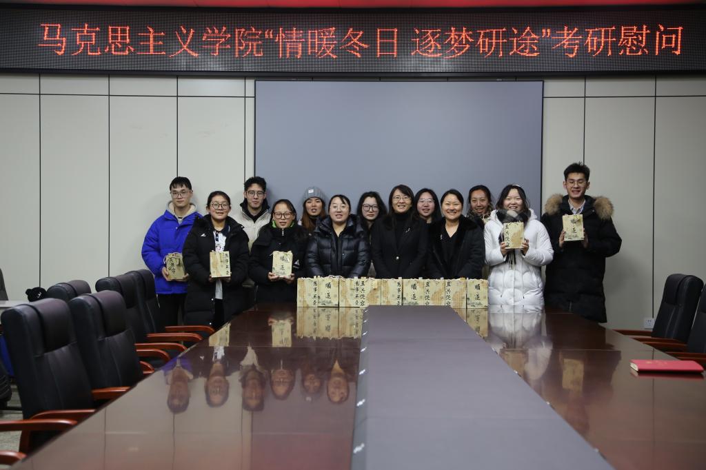 长风破浪会有时,直挂云帆济沧海。为激发学院考研学子的学习热情,帮助同学们坚定考研信心、缓解备考压力,以更加积极的心态迎接考试。12月18日,马克思主义学院开展“情暖冬日 逐梦研途”考研慰问活动,学院党委书记张影、党委副书记李宁、辅导员宋烨为同学们送上真切的祝愿。