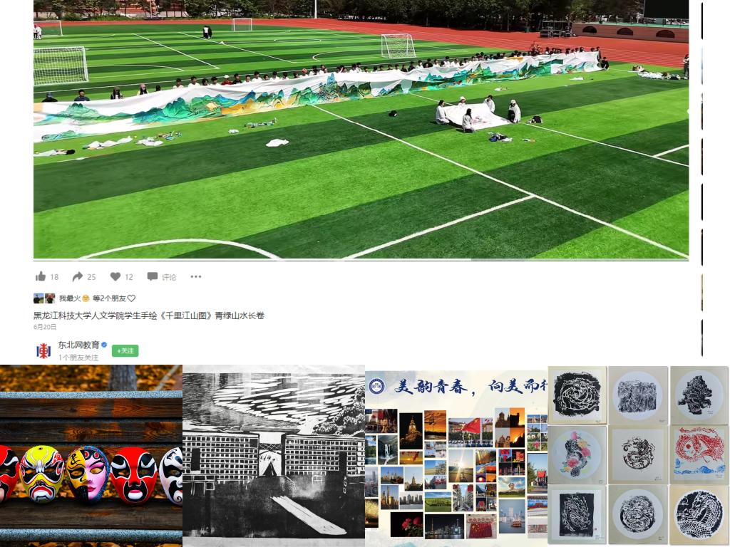 秉持以美育人、以文化人、以美培元理念,构建特色的美育工作体系,创作出系列弘扬OD在线精神、彰显OD在线气派的美育作品。其中,“《千里江山图》青绿山水长卷绘画暨《我的学校》思维导图绘制活动”,被东北网教育视频号发布推广。