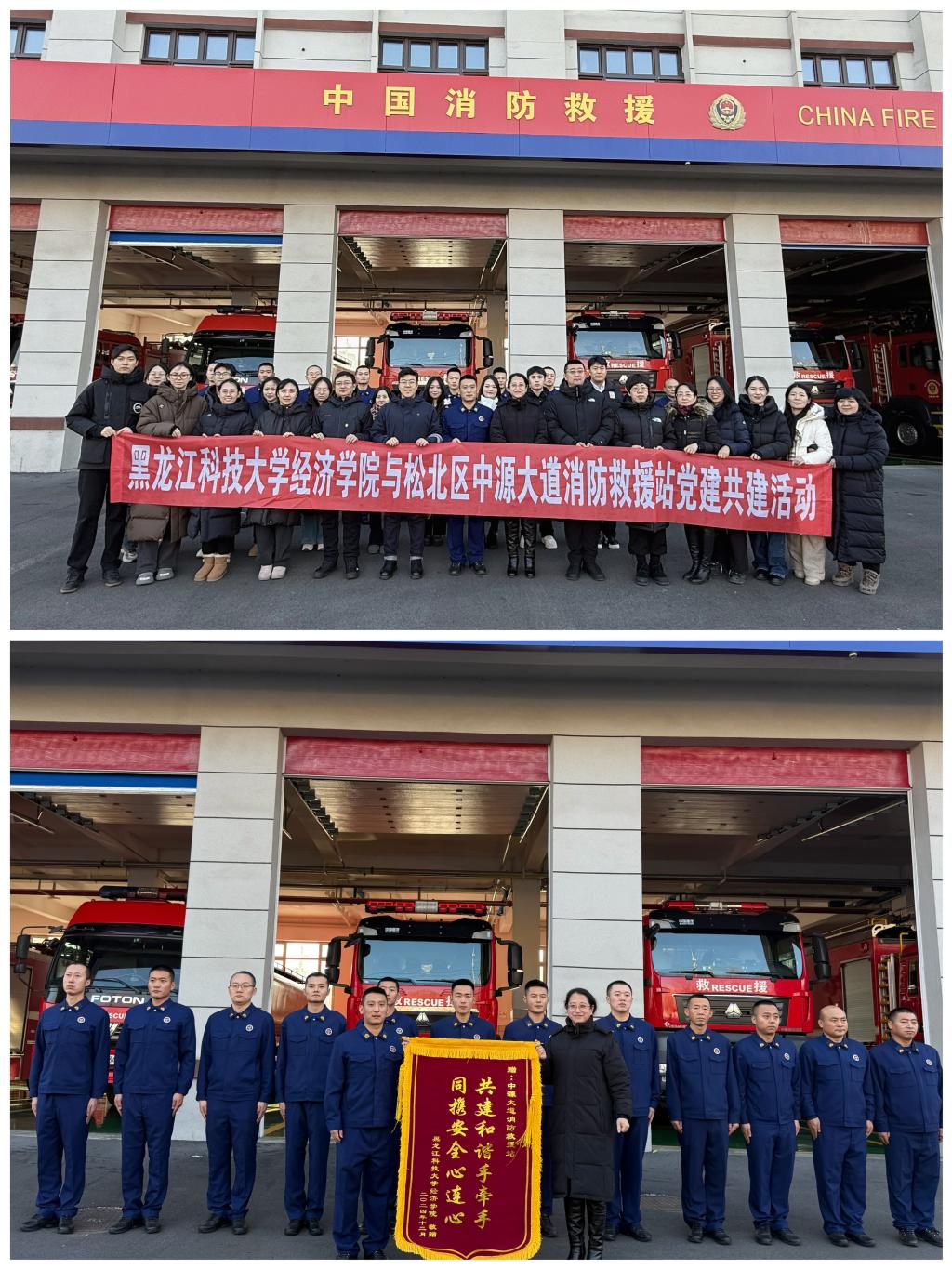 为深入贯彻落实党的二十大和二十届三中全会精神,充分发挥党建引领作用,构建“互带互动、优势互补、资源共享、共同发展”的党建工作新格局,力促党建共建工作取得实效,经济学院于12月27日到松北区中源大道消防救援站开展党建共建活动。经济学院党委书记雷金屹、松北区中源大道消防救援站站长阴其宝、学院各党支部书记、教师和学生代表及消防救援站消防员等50余人参加本次活动。