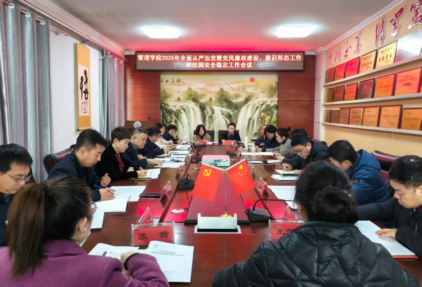 为深入贯彻落实好学校2025年全面从严治党工作会议和安全工作会议精神,层层压紧压实全面从严治党和校园安全稳定主体责任,以高质量党建引领学院高质量发展。4月2日上午,管理学院在三楼会议室召开2025年全面从严治党暨党风廉政建设、意识形态工作和校园安全稳定工作会议。会议由学院党委书记何景洋主持,学院党政班子成员、各系(办、中心)主任、教师和学生党支部书记、全体辅导员参加了会议。