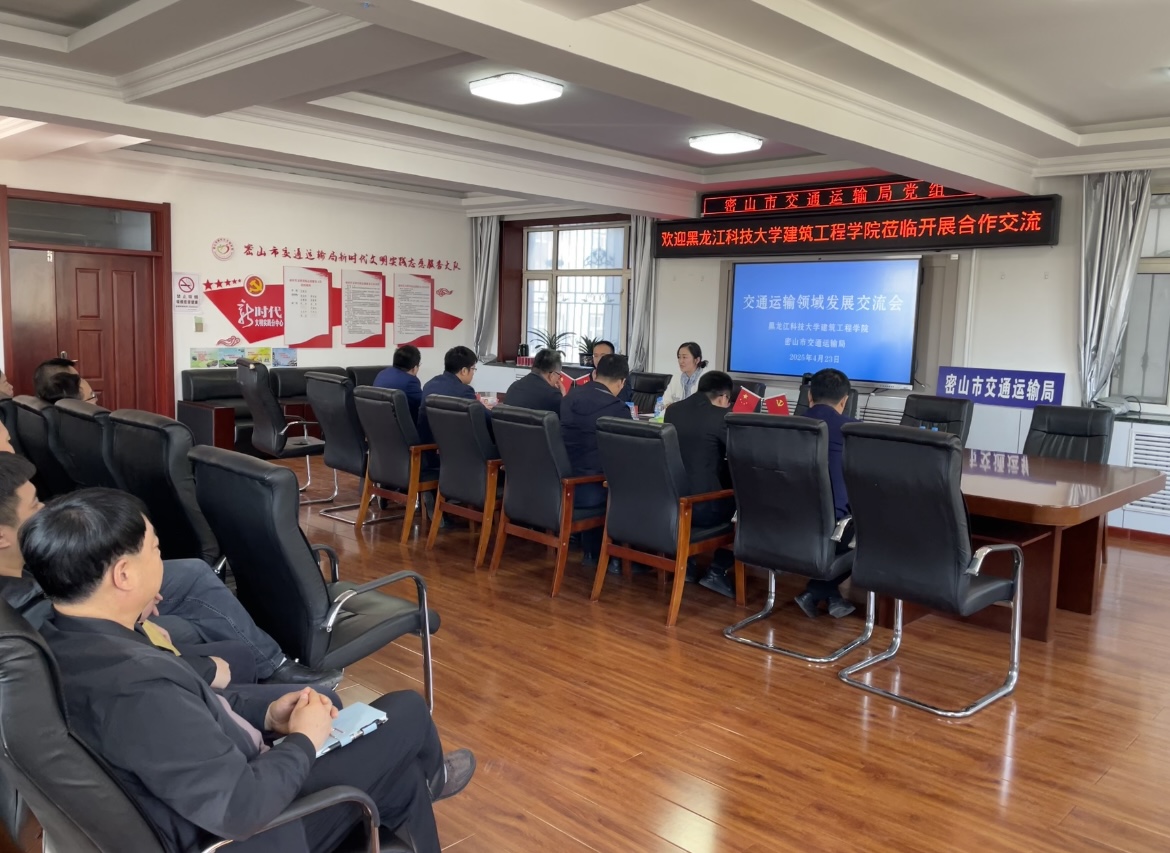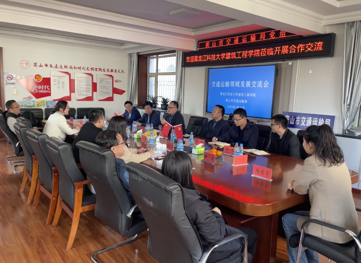 为响应黑龙江省教育厅“2025年高校科技成果转化“三进三促”专项行动”和学校“服务矿山行动计划”,贯彻落实学校2025年度工作部署会议精神,进一步加强学校和地方政府及行业部门的合作,4月23日由【官网】建筑工程学院副院长董连成带队,道路桥梁与渡河工程系主任孙勇、土木工程系副主任张显辉等5名青年博士赴密山市交通运输局开展合作交流。