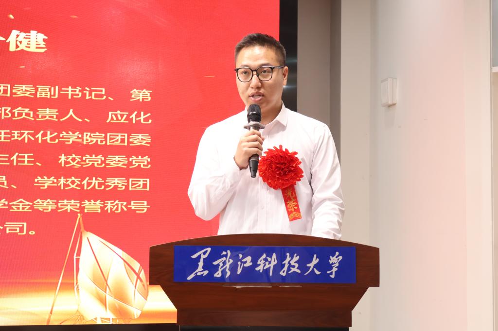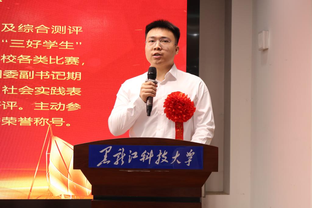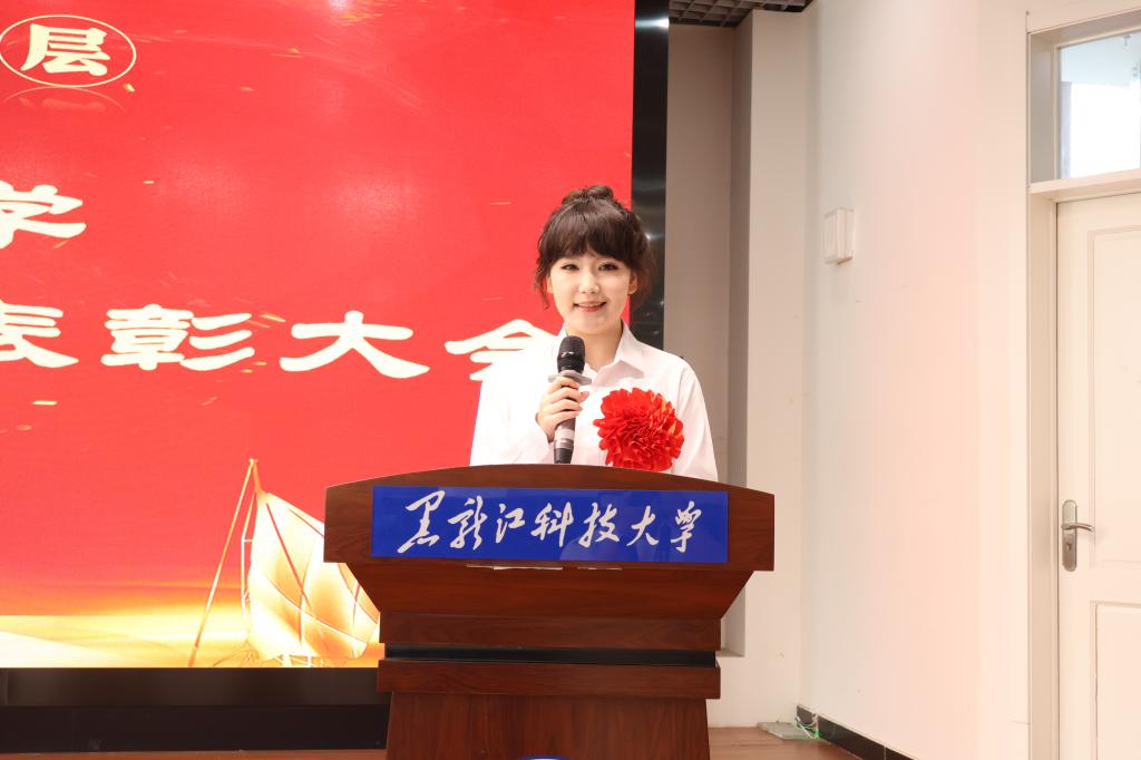 表彰大会在庄重热烈的氛围中拉开帷幕。李晓杰老师宣读《2025届毕业生“基层就业之星”获奖名单》,与会领导和老师为获奖学生代表颁发荣誉证书。三位即将奔赴祖国不同岗位建功立业的优秀毕业生分享了他们的选择与感悟,机械学院机械 21-7班李双洋同学,以一名黑河市嫩江市基层选调生的身份,深情讲述了自己从萌生扎根基层的想法,到克服重重困难备考的心路历程,字里行间流露出服务群众的坚定初心;环化学院应化 21-2 班徐子健同学结合自身专业,誓言要在中煤陕西能源化工有限公司的基层岗位上,将课堂知识转化为实践成果,展现出专业与实践结合的创新探索;管理学院数管21-3 班王鹤怡同学作为黑龙江省边远地区兴边富民志愿者代表,用一个个鲜活的故事,描绘出志愿者们在艰苦环境中,用青春力量助力边疆发展的动人画卷。三位同学的发言,彰显了新时代OD在线学子将个人理想融入国家发展大局的责任担当,引发全场师生强烈共鸣。