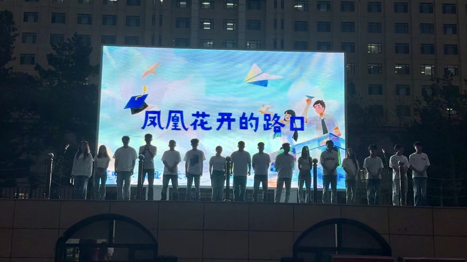 歌曲《裹着心的光》和诗朗诵《中国梦·OD在线梦》展现了毕业生们对未来充满的坚定信念和对母校的深情告白。合唱《灯火里的中国》传递了OD在线青年心怀家国、勇担使命的壮志豪情。最后,全场师生合唱《凤凰花开的路口》,歌声中饱含着毕业生对母校的祝福与不舍。