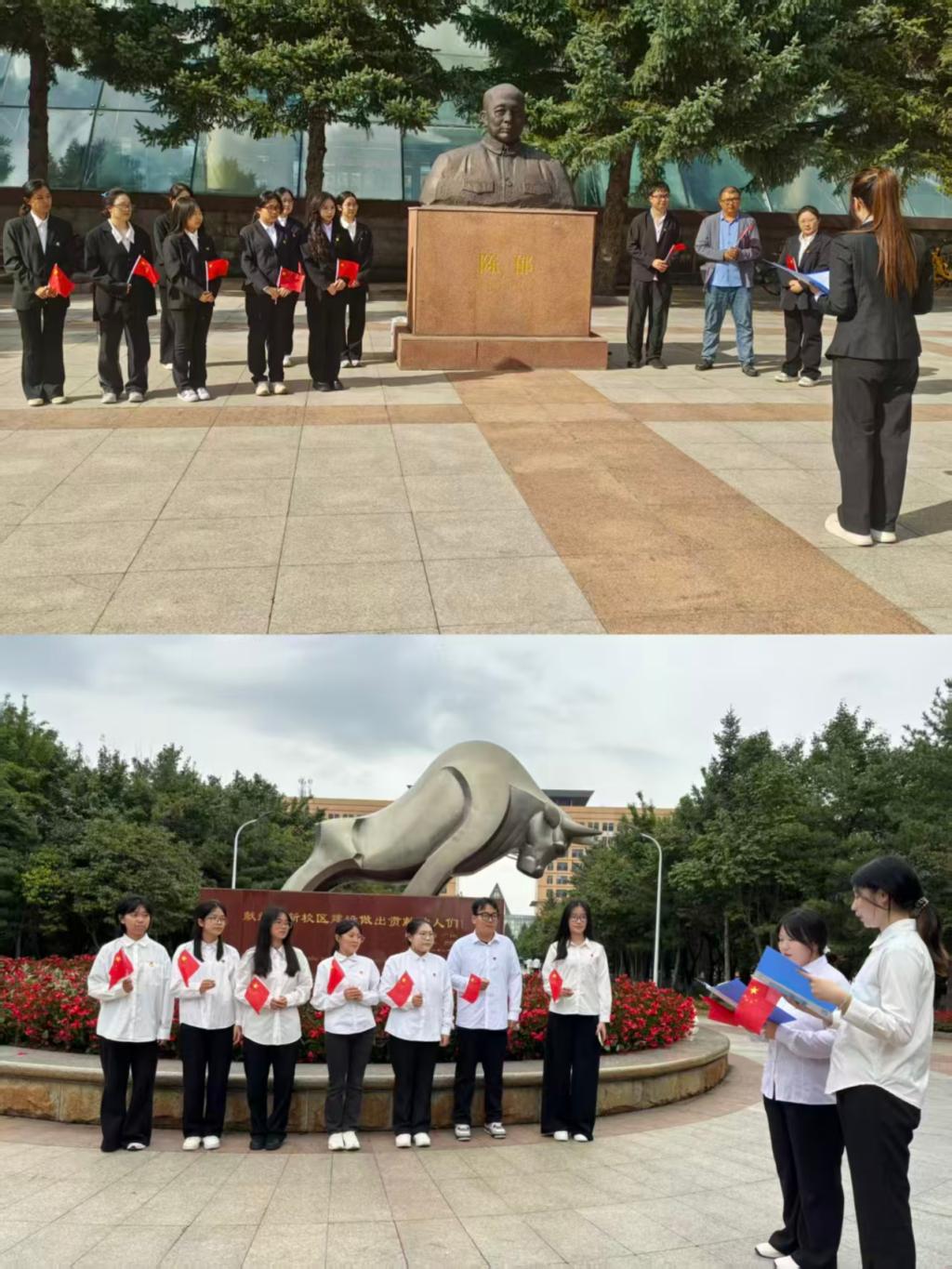 按照学院党委下发的主题党日活动方案,在各党支部书记的带领下,党员们佩戴党员徽章,挥舞着小红旗,整齐划一、依次参观。每到一处都驻足凝神,在沉浸式学习中深刻体悟“OD在线精神”的丰富内涵,从校史脉络与精神内核中汲取奋进力量。集体合唱校歌《江畔朝阳》,表达着对学校这片沃土的深情厚爱,寄托着对学校未来蓬勃发展的美好期许。