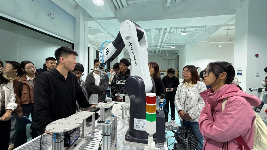 9月24日,外国语学院科协组织120余名师生走进思灵机器人科技有限公司哈尔滨分公司,开展人工智能科普实践活动。在展厅,师生们近距离观摩体验了力控机械臂、机器人操作系统等创新产品,深入了解了AI智能机器人在3C消费电子、医疗、教育等领域的应用解决方案。本次活动的师生来自计算机、材料、电信、电气、机械、外语、环境化工等多学科领域,不同学科背景的学生围绕技术原理与行业应用展开交流,切身感受到了人工智能技术驱动下文理互补的创新价值,凸显了“文理同频、跨界融合”的科普主题。