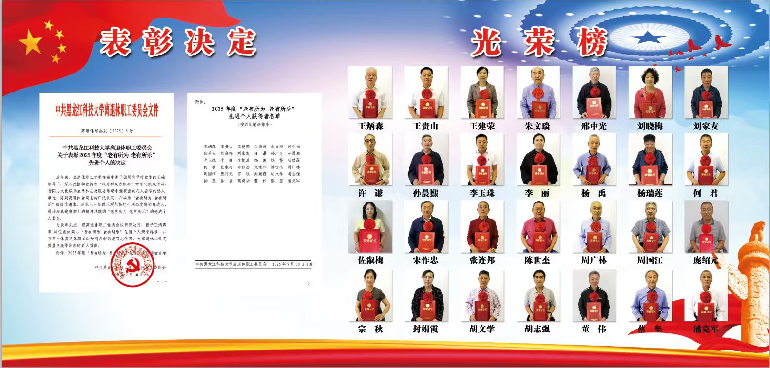 表彰先进树榜样,老有所为显担当。系列活动期间,还对在“我为群众办实事”常态化实践活动、老同志文化娱乐生活和志愿服务活动中表现突出的“老有所为老有所乐”离退休老同志代表进行了表彰奖励。此次活动大力弘扬了老有所为、老有所乐的精神,营造了尊老敬老、向上向善的浓厚氛围,激励更多老同志在新时代展现新作为,为社会进步和学校发展贡献银发智慧和力量。