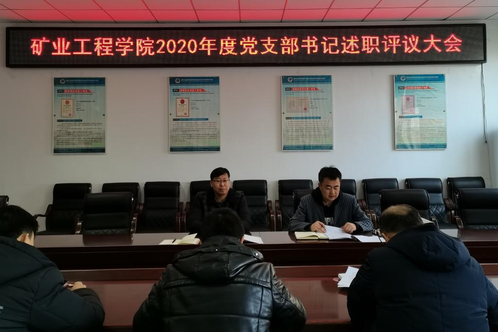 12月29日,矿业工程学院在学院一楼会议室召开2020年度党支部书记述职评议会议。学院党委书记刘海涛,副书记高明星及各党支部书记参加了会议。会议由学院党委书记刘海涛主持。
