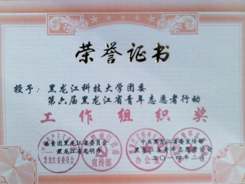 近日,由省委宣传部、团省委、省文明办联合开展的第六届黑龙江省优秀青年志愿者评选表彰活动获奖名单揭晓,【官网】获得多项表彰。校团委荣获全省志愿服务“优秀工作组织奖”;校青年志愿者协会荣获“优秀青年志愿服务集体”;星光支教队、朝阳服务队、伊春服务队等3个志愿服务项目荣获志愿服务“优秀项目奖”;常也、刘士奇等6位同学荣获“优秀青年志愿者”称号;徐慧岩、李通一等2名同学荣获“西部计划优秀志愿者”称号;周恩远、高汝男等2名老师荣获第六届黑龙江省志愿服务工作“先进个人”荣誉称号。