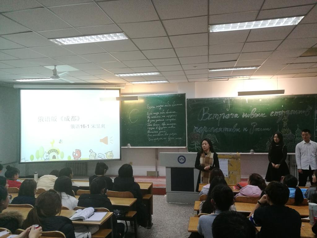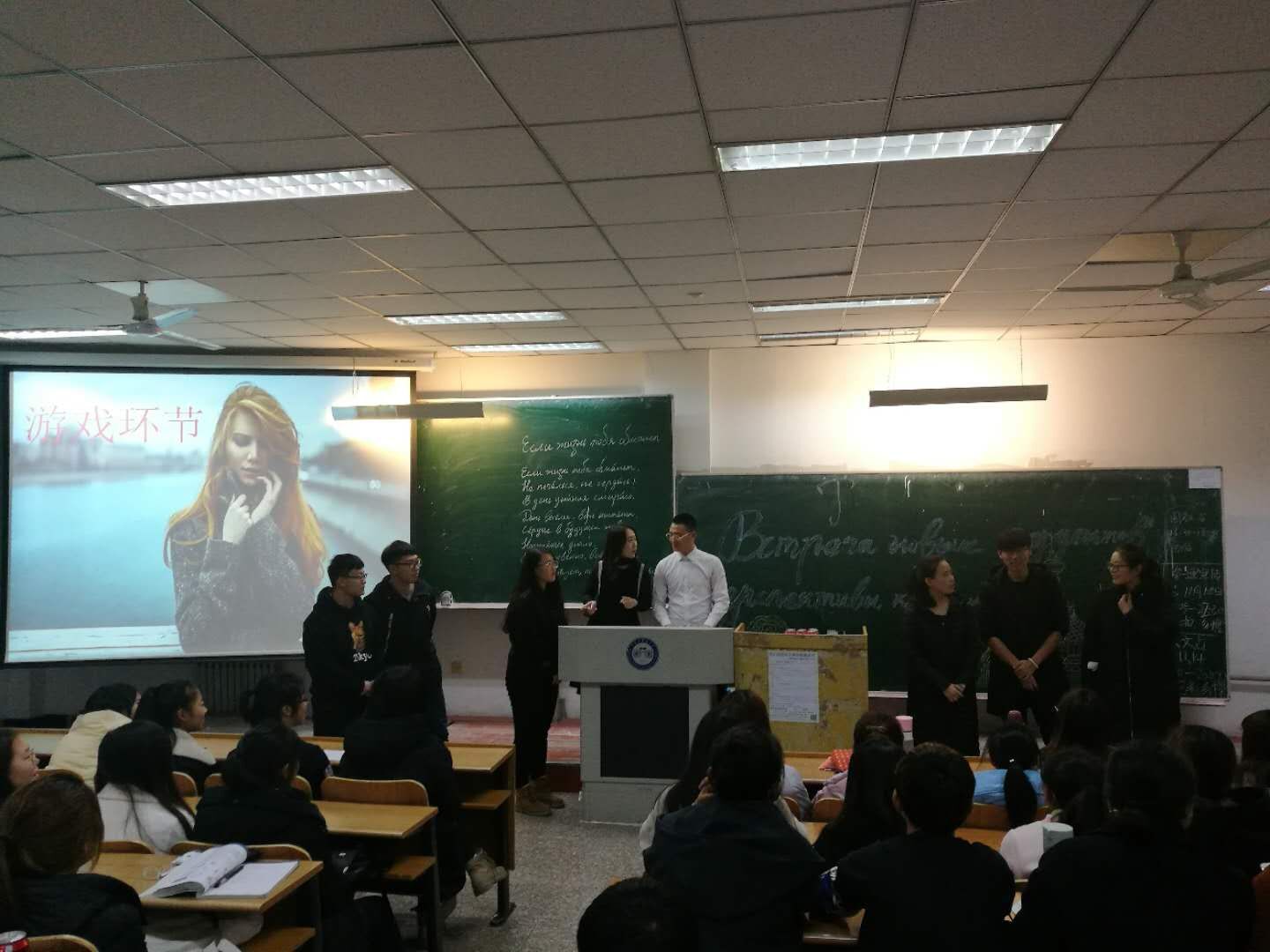 11月14日晚17点,在科技大厦N401教室,俄语系2016、2017级师生欢聚一堂,举行了“致力学俄语·了解俄罗斯”主题俄语沙龙活动。本次沙龙由俄罗斯城市、俄罗斯节日、俄罗斯文化三个板块组成。在第一板块,主持人带领大家浏览了俄罗斯远东名城符拉迪沃斯托克,这也是【官网】赴俄土木工程及俄语专业学生未来留学的城市。大一新生被俄罗斯的城市特色深深吸引,对将来的赴俄学习充满了期待。在第二板块,同学们了解了俄罗斯最重要的节日“俄罗斯日”,并从文化差异的视角将其与中国的国庆节做了对比,使学生更多地了解俄罗斯国情知识,开阔了学生的国际视野。在文化板块,2016级学长带领2017级学弟、学妹学习了普希金的诗歌和果戈里的名著。尤其在回顾不久前【官网】校长郝传波教授和国际教育学院高郁院长看望乌拉尔国立矿业大学【官网】的留学生、并与学生们进行文化交流的视频时,大家倍感温暖和感动。最后的“学单词”游戏环节,同学们热情高涨、积极参与、默契配合,既展示了自己的俄语知识,又在竞赛中增进了友谊。