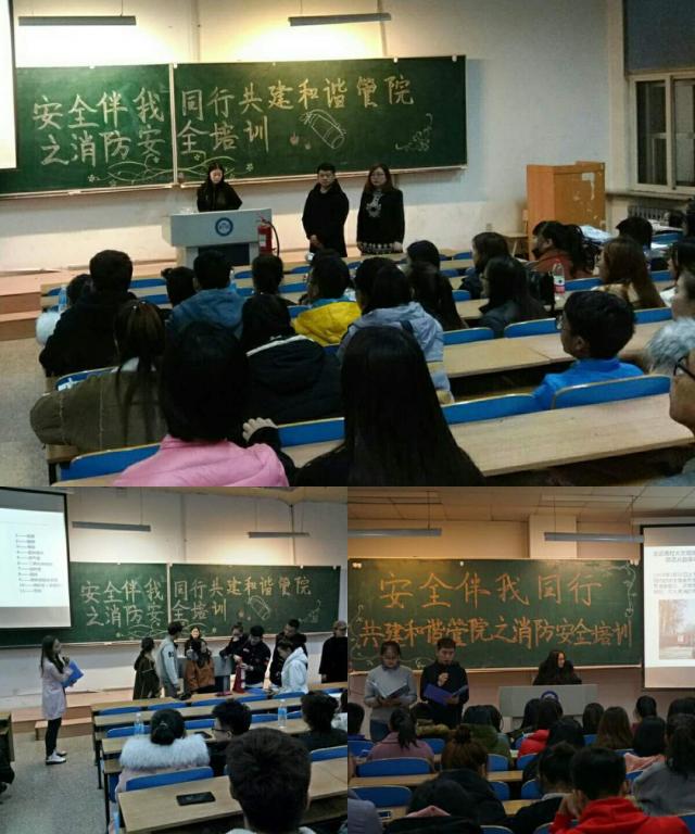 本次培训组建了三个培训团队,精心设计了培训内容并提前进行了培训演练。培训共分四个部分,一是播放了消防警示案例教育视频,向同学们介绍了火灾的主要引燃物、火灾的防范措施和遇到火灾事故时的应对方案,使同学们初步了解安全防火的相关知识。二是由学生干部介绍历年来高校火灾的发生情况以及防火的相关注意事项。三是列举违章电器类型,并介绍使用各种违章电器易发生的安全事故,以及使用违章电器的后果,号召同学们从身边做起,规范自身行为。四是向同学们讲解灭火器的五种类型以及常见的干粉灭火器的使用方法和灭火器构造,全体学生逐一对灭火器的使用进行了模拟演练。