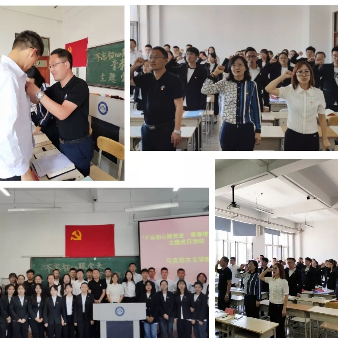 一次党课即“不忘初心跟党走青春使命勇追梦”主题党课。马克思主义学院于2019年6月18日在主楼E0415组织开展“不忘初心跟党走青春使命勇担当”主题党日活动。通过此次活动进一步坚定全体毕业生党员的理想信念,激发报国之志、爱国之情,时刻做到毕业前和毕业后一个样,校园内和校园外一个样,树牢“四个意识”、增强“四个自信”、做到“两个维护”,将“一名党员一面旗帜”牢记于心,让党徽在今后人生的征程中闪闪发光。