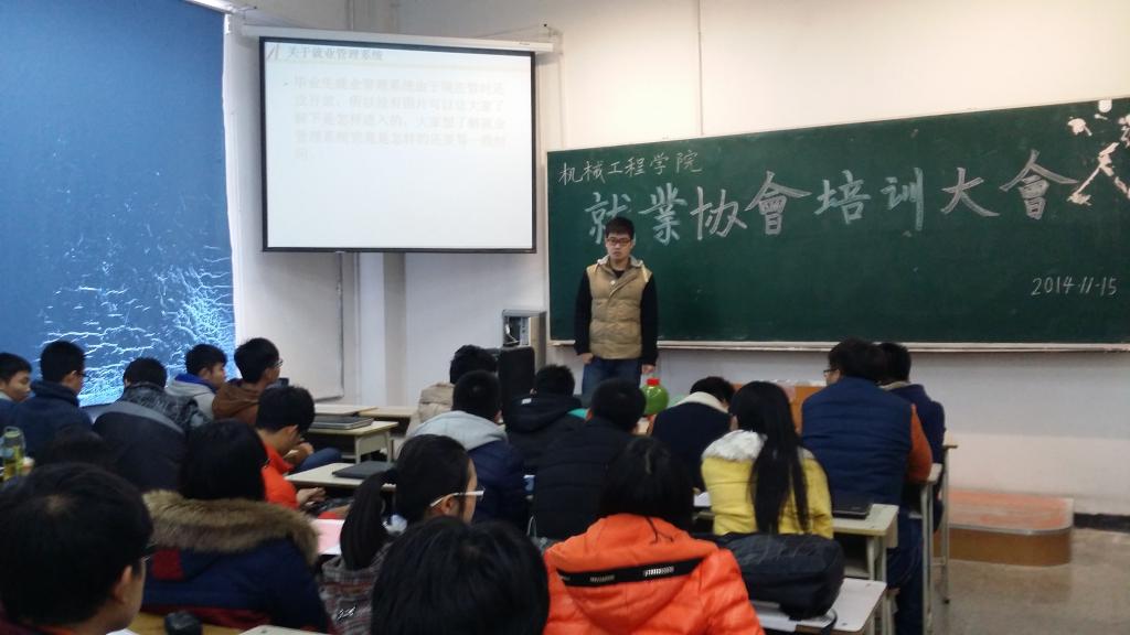 为切实掌握2015届毕业生就业情况,机械工程学院于11月14召开了机械工程学院毕业班班主任大会暨2015届就业工作推进会。会上总结了本学期开学两个月来机械学院就业情况,各班主任对本班级就业情况进行了汇报,详细的说明了未就业学生的意向及动态,并制定了有针对性的帮扶计划。机械学院党委副书记吴新文对就业工作做了明确的要求,一是班主任要认清当前的就业形势,统一思想,引导学生正确认识就业形势;二是要综合利用好学校的各种条件,为学生创造更多更好的就业平台;三是要进一步做精细化的就业工作,了解掌握就业政策,细分未就业学生的类别,分别做工作,精确指导;四是今年就业难、就业压力大,一定引导学生“绿色就业”、“绿色考研”,避免出现安全隐患;五是在精细化工作的基础上提出“五早”,即:早思考、早动手、早设计、早联系、早落位。此外,机械学院还在11月15日召开了就业协会干事培训大会。由就业协会五个部门的部长分别对干事们进行了培训。